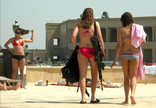 其实,以色列军队对女兵的管理并不像男兵那么严格,女兵服役的地点往往离家不远,下班后即可回家,第二天一早再返回军营。所以你能看到那么多穿比基尼的女战士在沙滩上走。