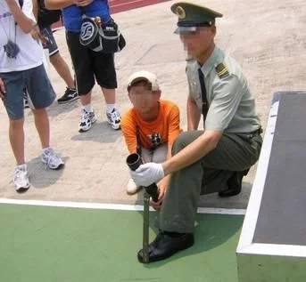 2004年驻港部队的开放日,解放军战士演示掷弹筒发射方法