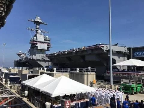 而在英国“伊丽莎白女王”号服役前的4.5个月,美国海军首艘“福特”级核动力航母“福特”号于7月22日正式在美国航母的西部大本营——诺福克海军基地服役。这艘新一代超级核动力航母的典型代表,排水量超过10万吨,最高速度超过30节,因为首次装备了电磁弹射器和F-35C而名声大噪。目前“福特”级的三号舰已开工,而“福特”号正在进行夜间起降训练,在服役仅仅4个多月就能使用新系统展开夜间训练,足见其训练强度之大、节奏之快,有望在2018年加入其它10艘航母的行列。