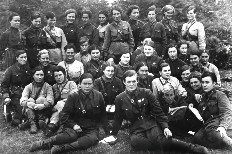 唯一支只属于女性统治的空军小队是第588轰炸机团夜巫正式成立,从飞行员到机长到机械师的都是女性,1942年,夜巫在机场列队点名。