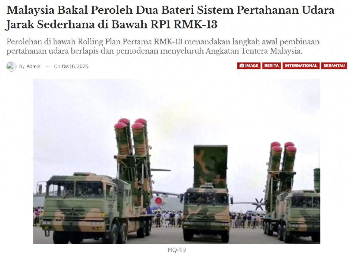 日前,亚洲军事网站Defence Security Asia报道,马来西亚政府在发布的第十三个五年发展规划(13MP)中,正式将采购两套陆基中程防空系统列为计划。而中国的红旗-16防空系统,原本在竞争中并不被看好,但随着竞争的加剧,它的表现愈发突出。与此同时,中国的SH-15卡车炮也参与了与其他国家的竞争。外界普遍认为,这代表着中国武器在马来西亚市场上的逐步崭露头角。