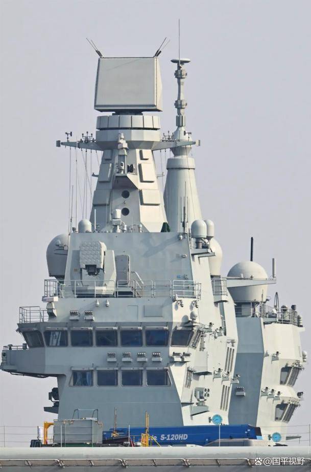 四川舰,满载排水量4万吨,舰上设置了两座舰岛的上层建筑,将航海舰桥和航空舰桥分开,有利于战时航行控制和舰载机起降的调度和指挥。
