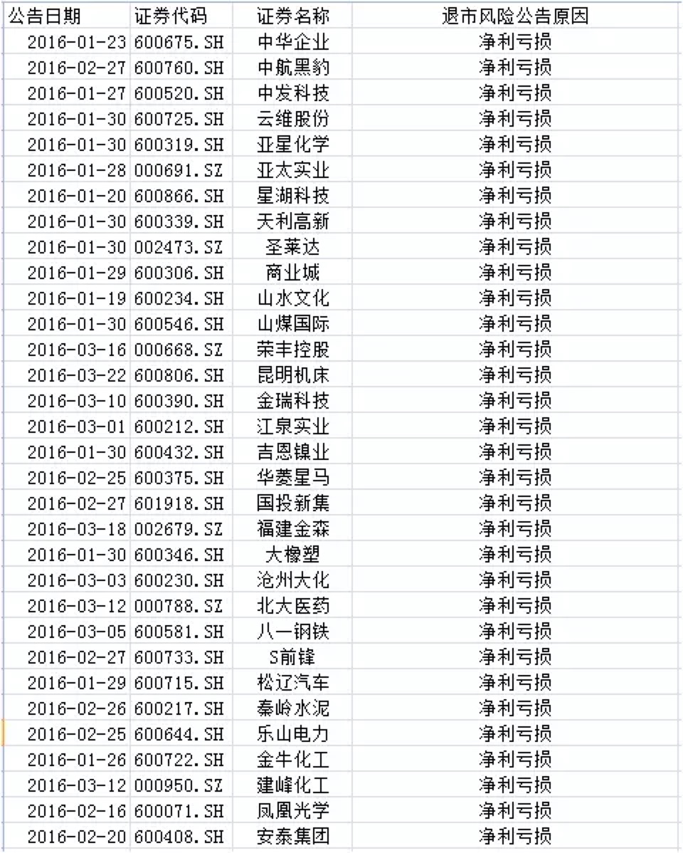 附:存在退市风险个股一览