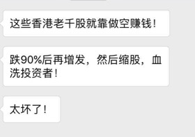 老千股,人称港股特有的“妖艳贱货”,这些“妖艳贱货”,套路比山高比海深,不爱好好学习就爱耍流氓。怎么个耍法呢,就不以盈利为目的,专门玩弄财技和配股、供股与合股等融资方式损害投资者,主要是·····散户的利益,连基金经理都看不下去了,如下打抱不平: