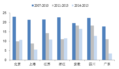 除了安徽省,其他一些在2010年之前人口净流出的省份,也明显出现了人口净流入的现象,如2007-2010年四川常住人口年均减少0.34%,2014-2015年则年均增长0.78%。当然,一个地区的人口增长除了迁入因素外,还应考虑人口的自然增长率。按照2015年的统计数据,人口自然增长超过30万的省份分别是河北、安徽、福建、江西、山东、广西、广东和云南,那么,只要这些省的常住人口增加数量超过30万人,就可视为人口净流入。