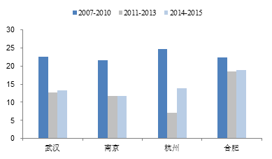 因此,随着一线城市房地成本的大幅提高,以及中低收入群体在超大城市和一般城市之间薪酬差距的缩小,人口的集聚度将有所下降,如两年来安徽全省的人口增速超过其省会城市合肥的人口增速。当然,这只是经济发展过程中的阶段性现象,随着今后投资增速的回落,就业形势将变得严峻,当中小城市的就业机会减少,则人口集聚度又会上升。