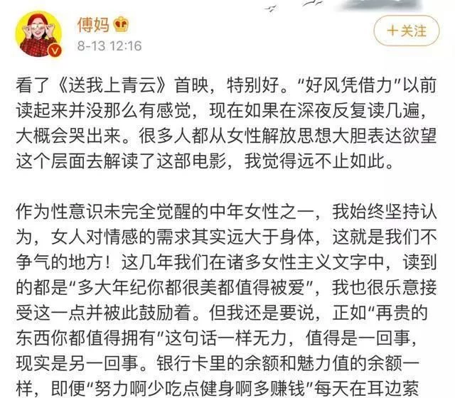 就像傅首尔看完影片后提到,“我始终坚持认为,女人对情感的需求其实远大于身体,这就是我们不争气的地方!”