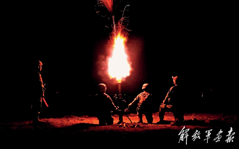 “东北方向发现目标!”午夜时分,新的“敌情”传来,各火力单元密切协同,做好抗击准备。随着一声令下,多型火器对目标实施集火射击,成功摧毁目标。