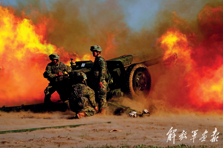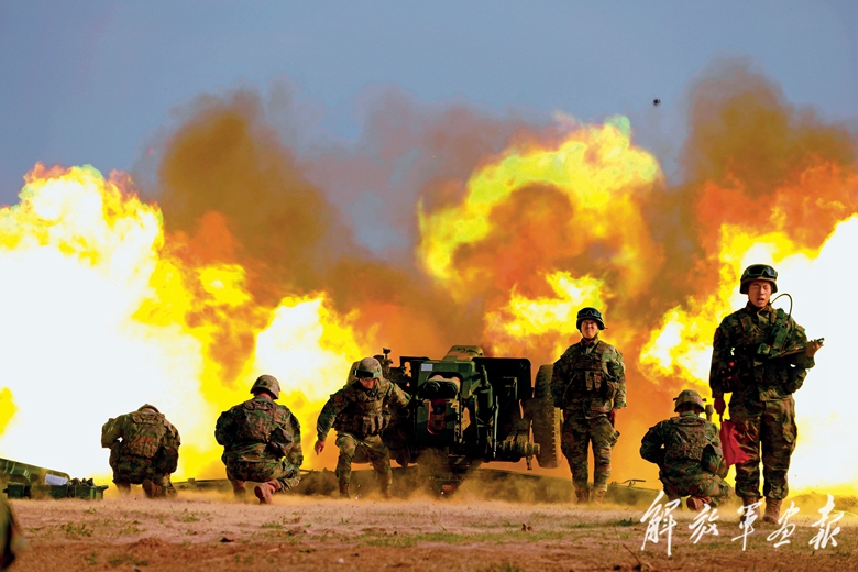 “预备——放!”接到指令,炮兵分队率先对目标实施打击,观察所实时回传打击效果,指挥员及时调整射击诸元。伴着声声巨响,一枚枚炮弹呼啸出膛,直扑“敌”目标。