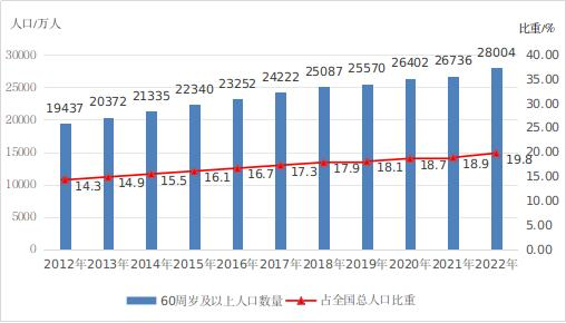 2000年,中国的人口老龄化率为10%,而到了2022年,这一比例已经飙升至19.8%,预计2023年将突破20%。