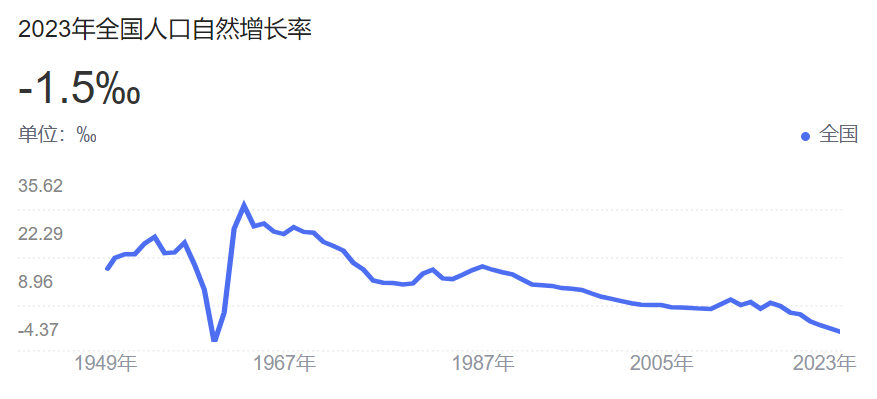 2000年,我国的人口自然增长率为7.58‰,而到了2021年,这一数字已经骤降至0.34‰,2022年更是转为负值,2023年也是负数。这些都有国家统计局的公开数据可以佐证。