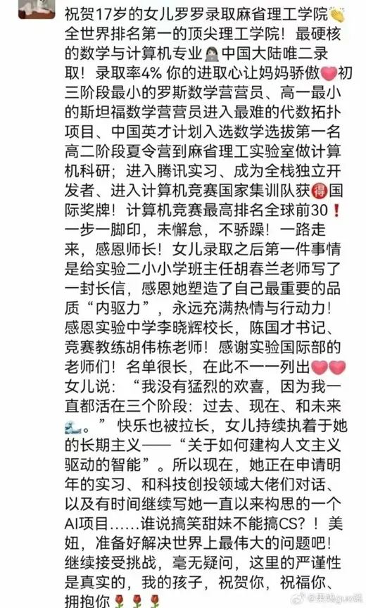 也就是说,成绩跟她差不多好的孩子那么多,凭啥她能被MIT录取?
