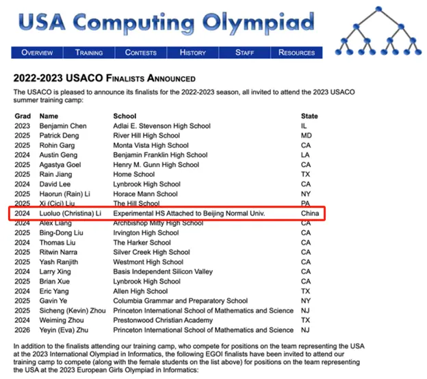 问题在哪呢,李同学也参加了USACO集训营。而USACO集训营是为了选拔可以代表美国队参加国际信息学奥赛的选手,只有美籍孩子才可以加入,并没有对外籍开放。