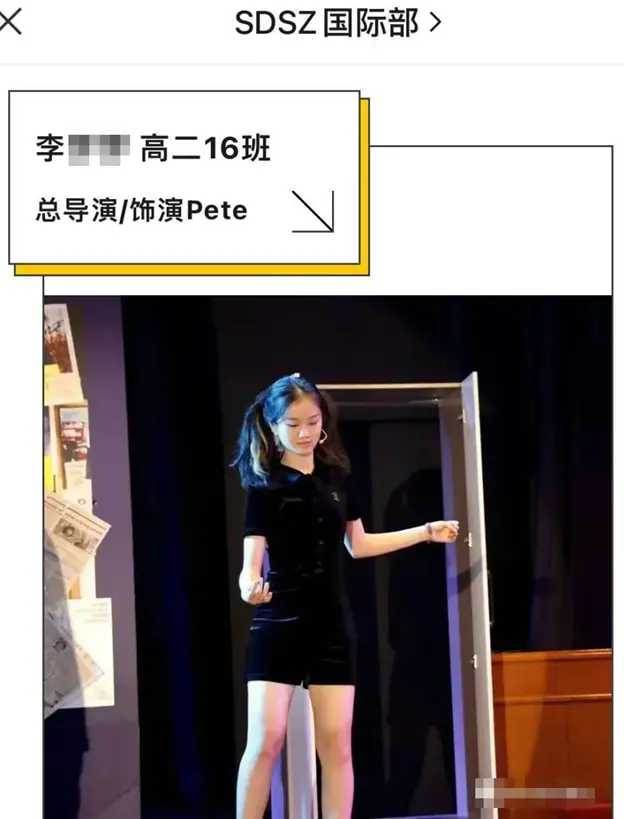 按照李同学中学的官方V博(SDSZ国际部),李同学不仅竞赛成绩优秀,还作为导演和演员参加过音乐剧,拿过2023非虚构创意写作三等奖,参加过各种演讲活动(以下截图均为公开资料)。
