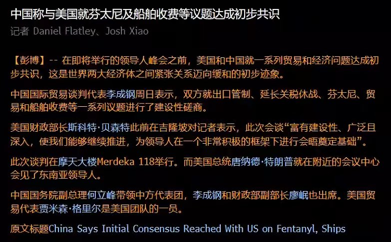 ①川普发布会称芬太尼税不可持续,暗指此次会面或有可能取消芬太尼税;