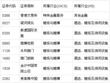 港股市场上,博彩股是港股市场中最具地方特色的一个板块,也是该市场所独有的品种。此外,受沪港通政策影响最直接的上市公司香港交易所(00388.HK)。共8只股票。