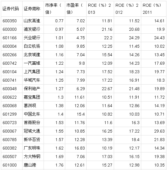 稀缺股之二:沪市低估值加单市场个股